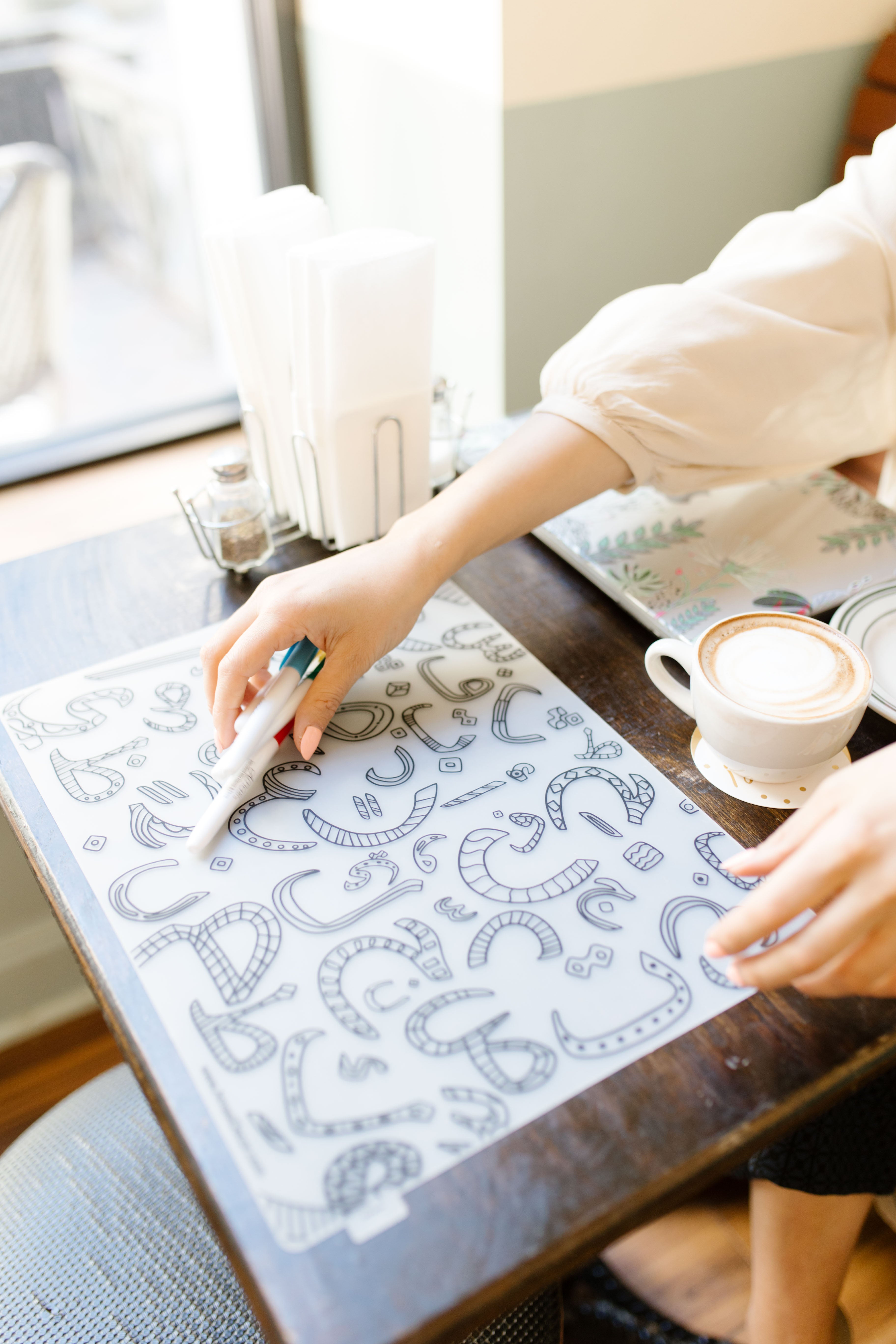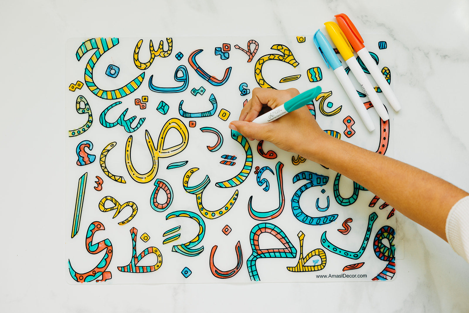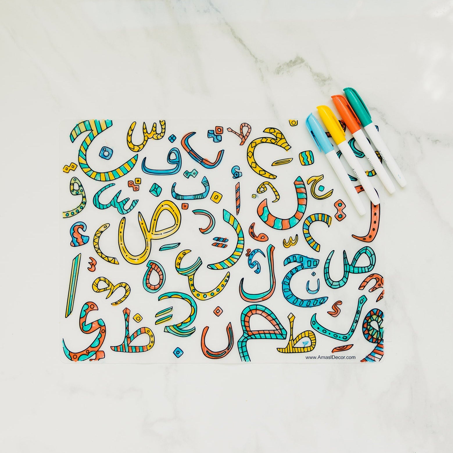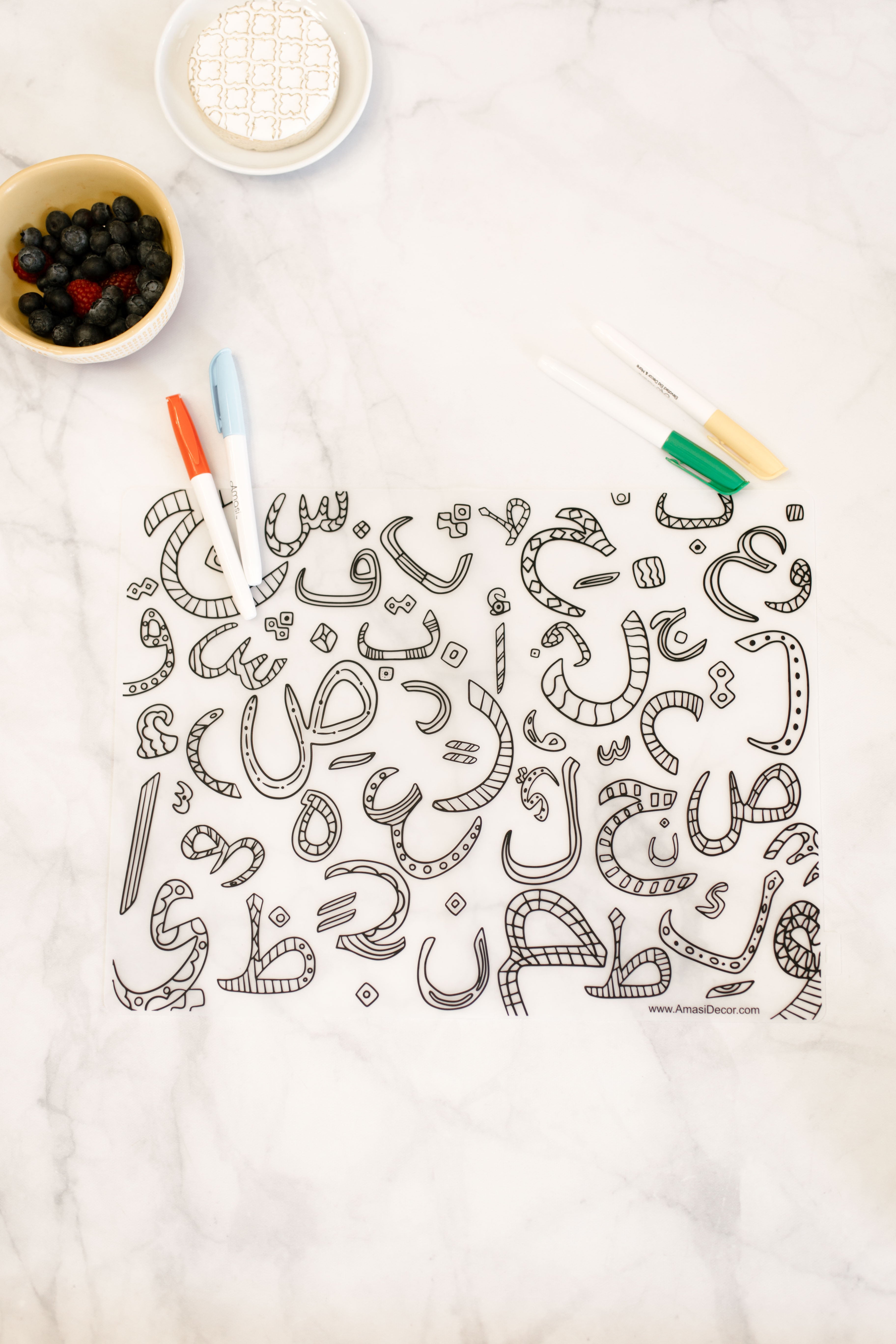 Washable Arabic Alphabet Coloring Silicone Placemat, Eid, Ramadan, decor, party, Eid gifts and traditions, Islamic holidays, Ramadan fasting, Eid, Ramadan, Party, Decor, Holiday, Celebrate, Trendy, Elevated style, modern, elegant, Minimal