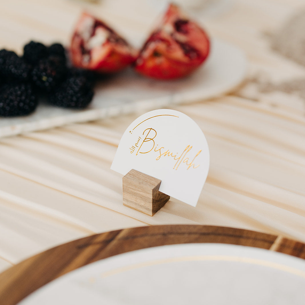 Add a touch of elegance and spirituality to any occasion with our Levant Sky ‘Bismillah’ Place Cards. Perfect for charcuterie boards, buffet spreads, or as thoughtful accents on individual dates and treats, these small but impactful cards are as versatile as they are meaningful.
